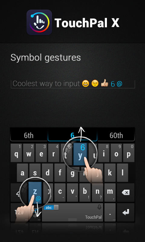 Um truque que deve ajudar e muito na digitação de símbolos e números foi a adição de gestos. Por exemplo, toque e arraste para cima em cima da tecla "e" que você digitará o número "3", já para digitar símbolos com mais rapidez você deve tocar e arrastar para baixo. Exemplo, toque e arraste para abaixo a tecla "Z" que aparecerá a "@" ao invés da letra "Z" no seu texto.